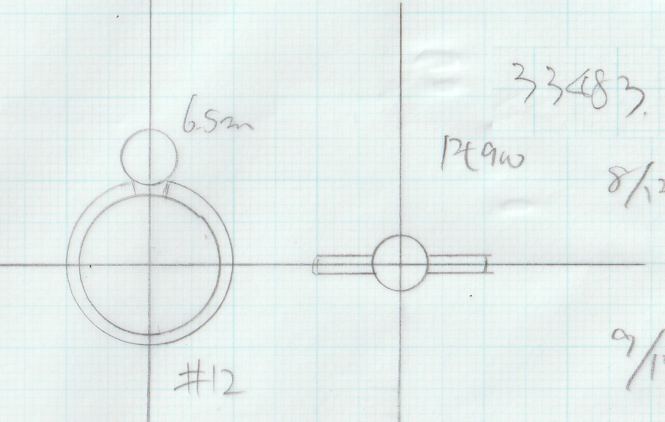 「プラチナで真珠が埋め込まれた感じの指輪にしてほしい」とのリクエストでございました。お客さまのご希望の写真をいただいて、それをもとにデザインを描き、デザインをもとに指輪の製作に入ります。
