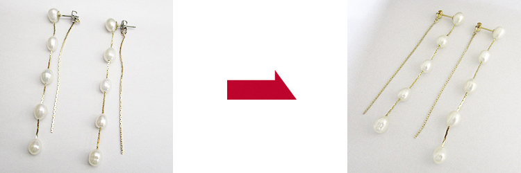 淡水真珠ピアスのポストを、18金のピアスポストに交換しました。