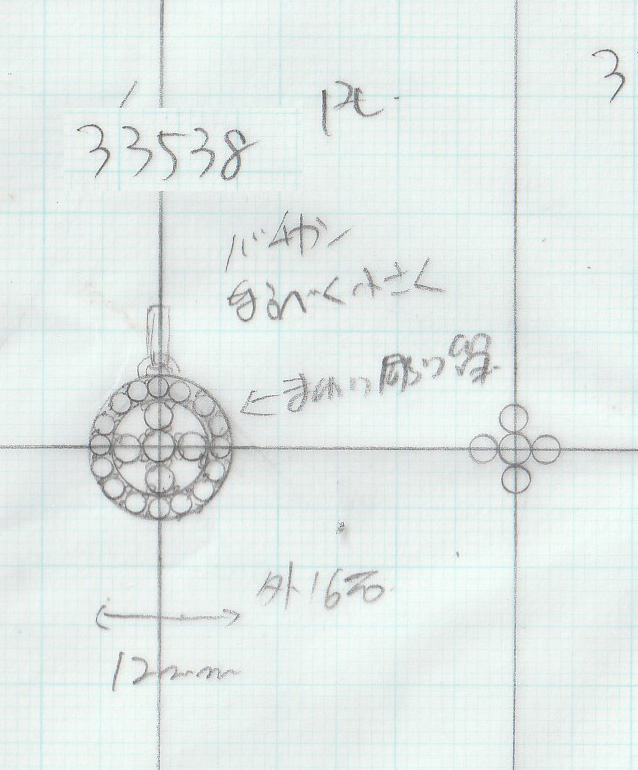 お客さまからは、「こんなプチネックレスを作っていただきたいのです」と写真をいただきました。そんなにむつかしくないかなと思いながら制作にかかりましたら、案外難しくてびっくりしました。