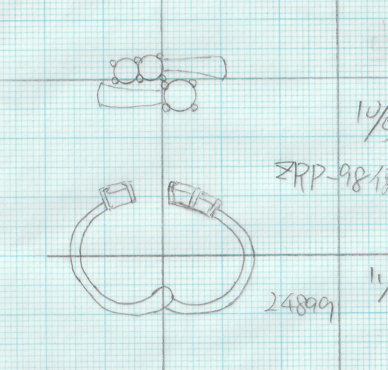 お客さまとお話するためにジュエリーのデザインを色々探索しております。図面だけの場合もありますが、本当に気になったものは実際に作ります。いきなり本番はしんどいので、試作を作ってみては問題点などを洗い出し、次に活かします。デザインというのはカッコだけやんと思いがちですが、使いやすさ、作り方であったり、考え方であったりします。