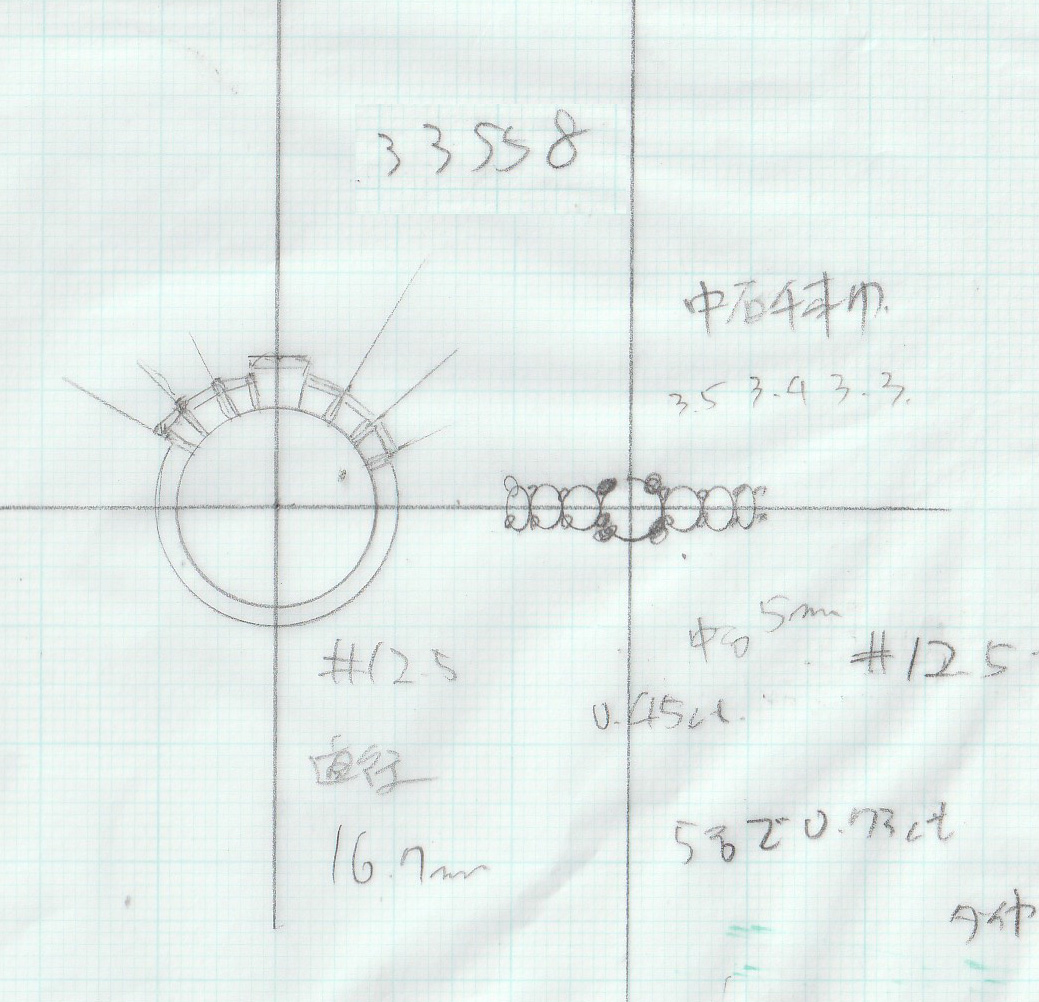 ダイヤ屋さんで3石ダイヤを合わせてもらって、枠を製作しいざ石留めとなると、合わせたダイヤが入りづらい。なんでかな?と採寸すると、3.6ミリのダイヤでした。