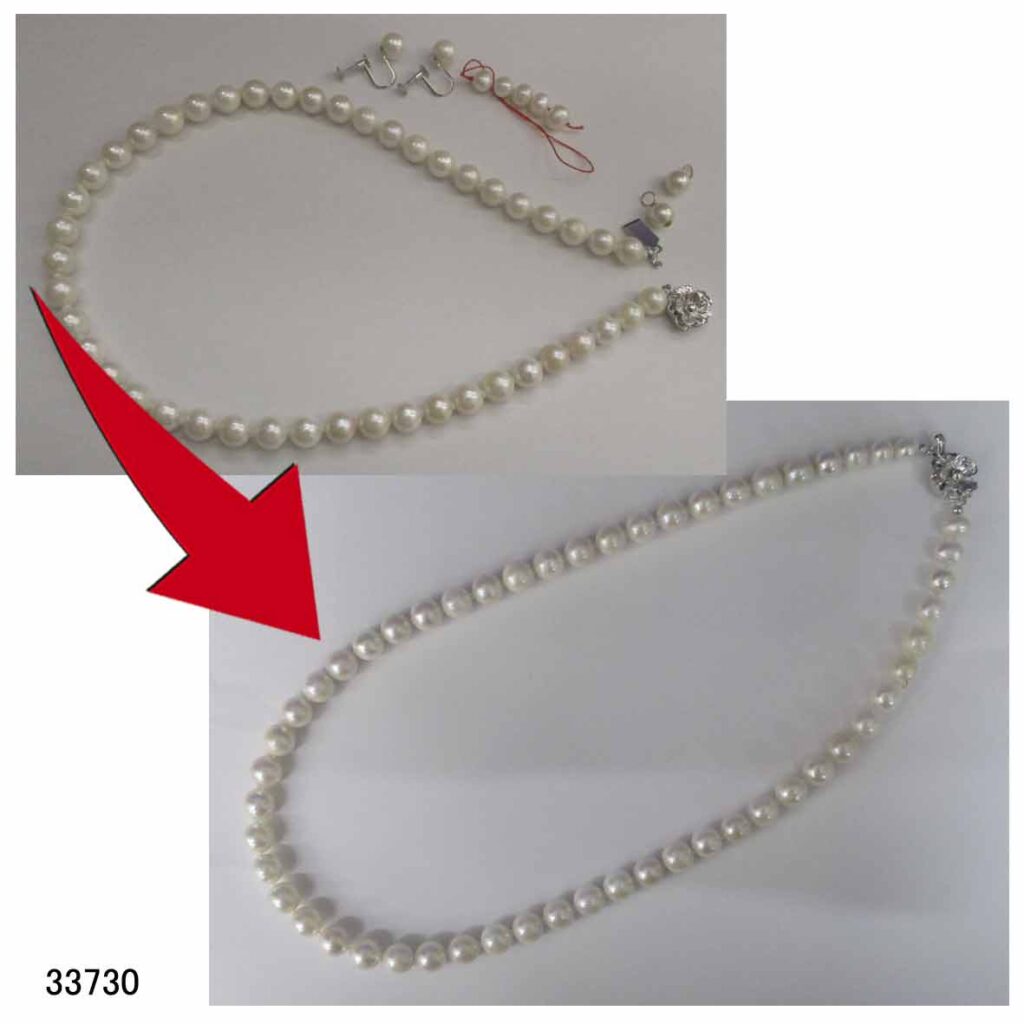 パールネックレスを延長リフォームさせていただきました。ご主人さまから贈られたネックレスもうしすこし長いほうが良いとのことでリフォームさせていただきました。たまたまお手持ちのイヤリングやピアスチャームなどを使ってリフォームさせていただきました。片穴のイヤリング珠などを両穴に加工しなおしたり、ピアスチャーム金具を真珠に傷つけずに外したりと慎重に加工を行いまして、ゆったりつけられる長さにリフォームさせていただきました。真珠の価格が高騰している今このようなリフォームは増えていくでしょうね。あなたのジュエリーのお悩みを解決します。パールネックレスリフォーム→https://j-ihara.jp/new_site/pearl-stone_necklace_reform.html