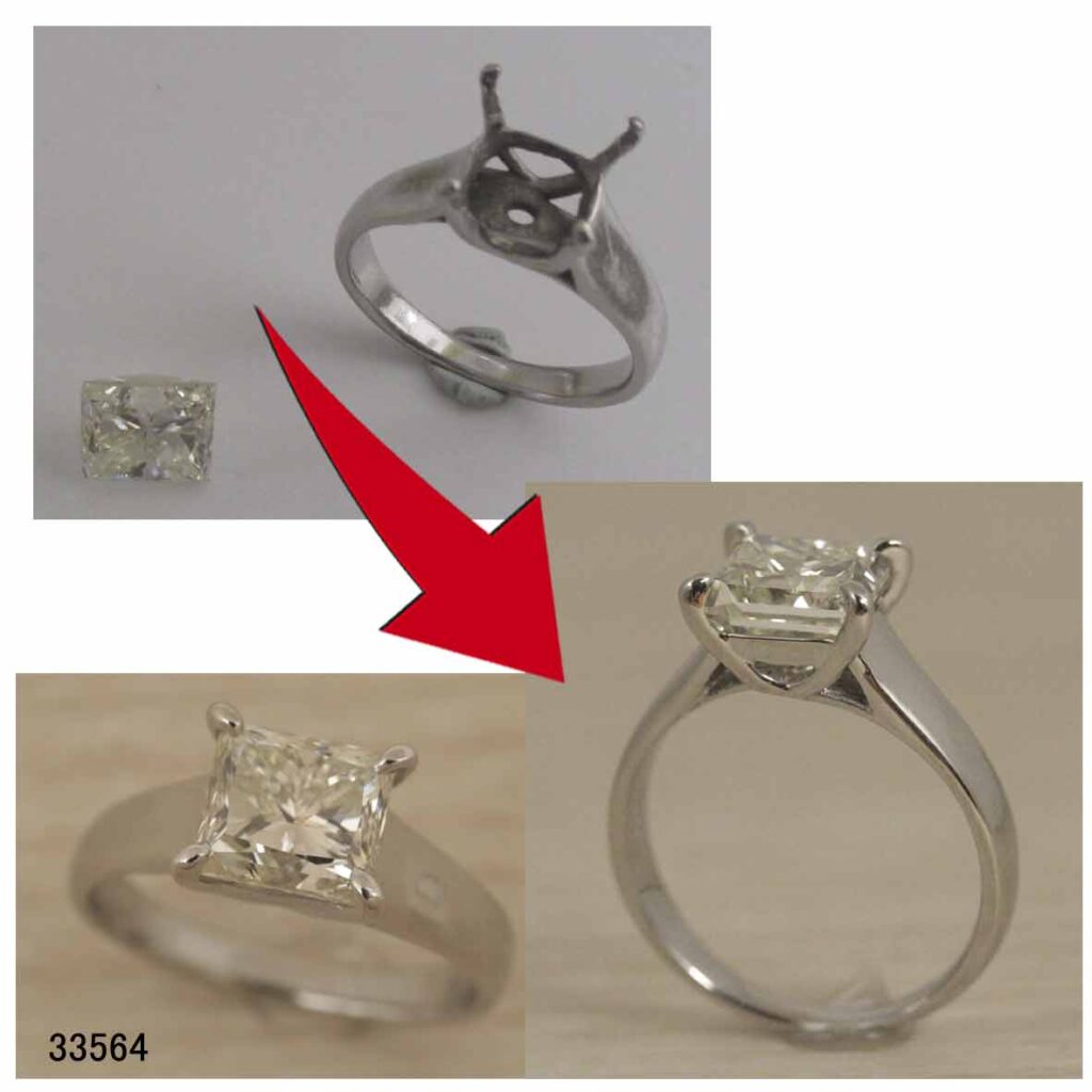 33564Ptプリンセスカットダイヤリング石留石座加工修理