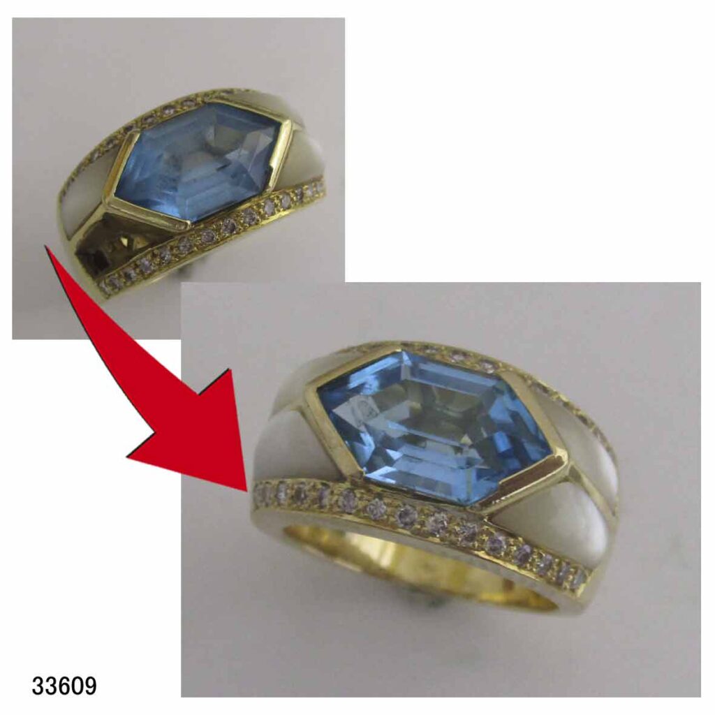 33609K18ブルートパーズ白蝶リングリカット石合わせ石留修理
