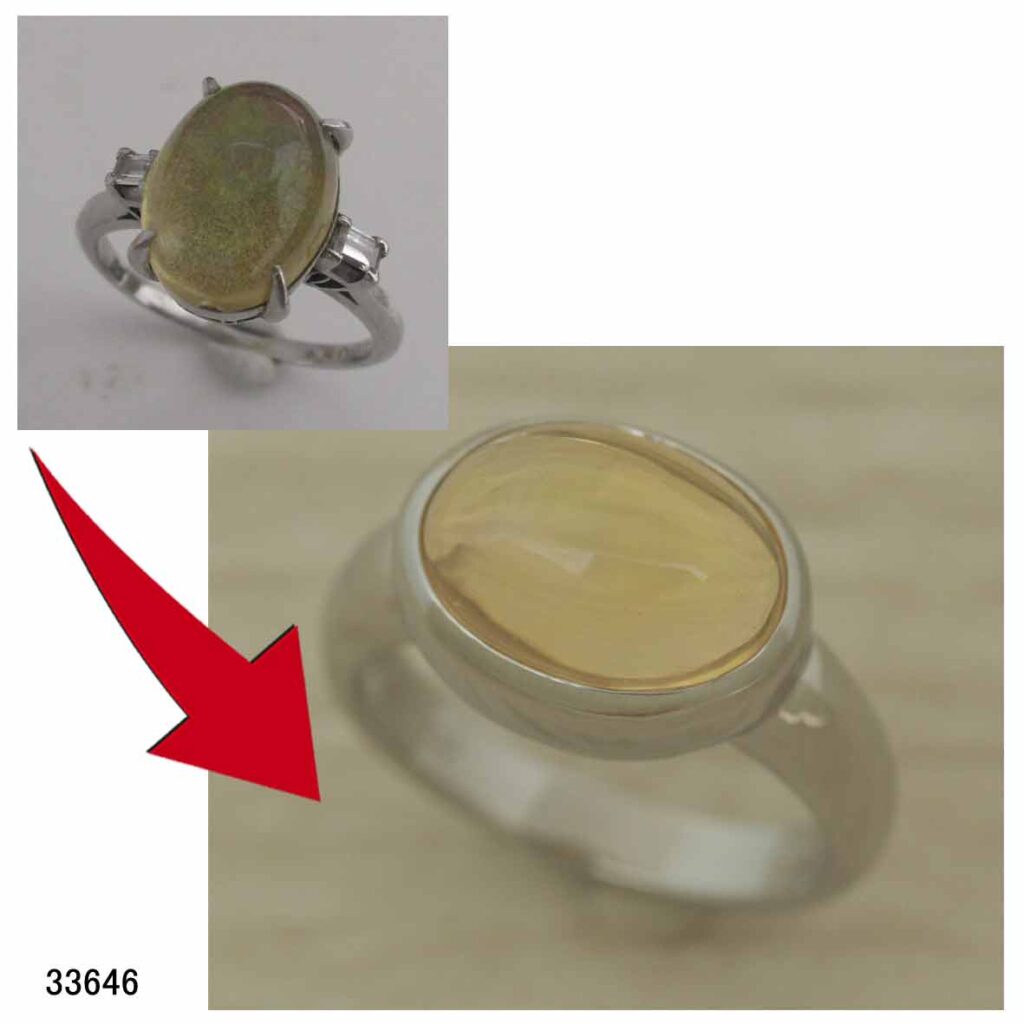 Ptオパールリングのオーダーリフォームをさせていただきました。受け継がれた宝石。どのようなものかわからないものも多いですよね。拝見させていただけましたら、デザインや製法、宝石でおおよそ5、60年前、当時はジュエリーの量産技術が拙くひとつひとつ職人が手作りし、石座裏の透かし模様は職人が糸鋸で切れ目を入れて作っていったのですよと答えることができます。こちらの指輪もオパールリングを横置きにして塊感のあるかわいいデザインにリフォームさせていただきました。受け継がれた宝石でわからないことがあればお気軽にご相談くださいね。あなたのジュエリーのお悩みを解決します。カラーストーンリングリフォーム→https://j-ihara.jp/new_site/ordermade_jewelry_colorstonering.html