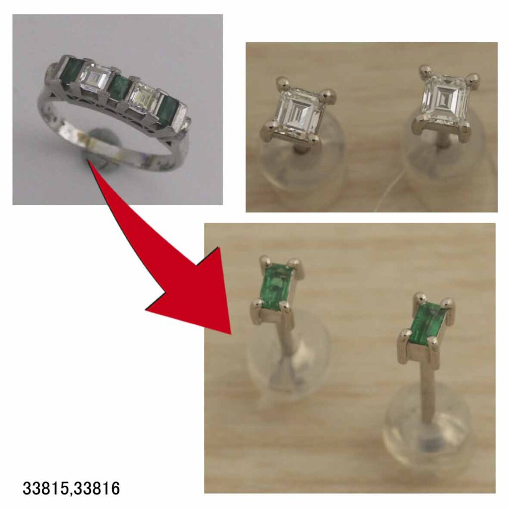33815,33816Ptダイヤエメラルドピアスリフォーム