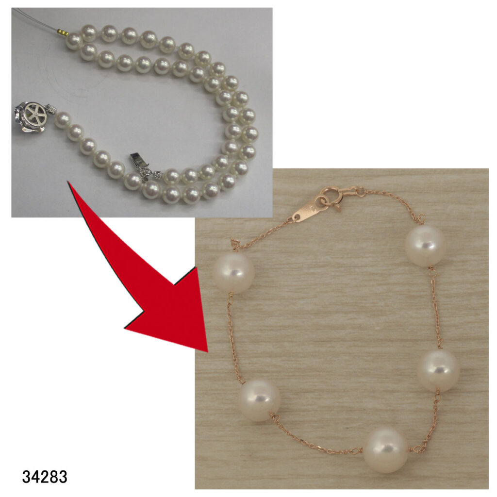 34283K18PGパールネックレスブレスレットリフォーム