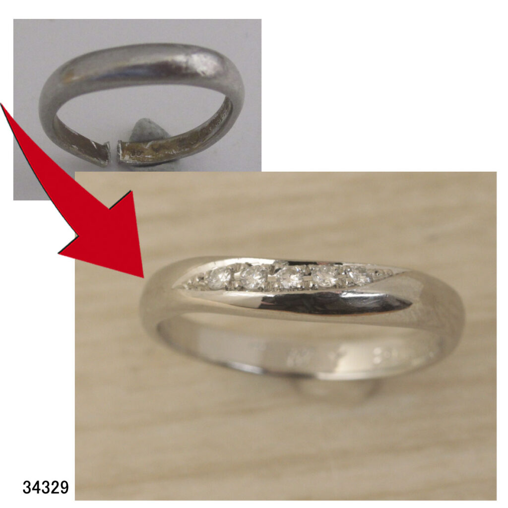34329Pt1000結婚指輪切断修理サイズ直しアフターダイヤリフォーム